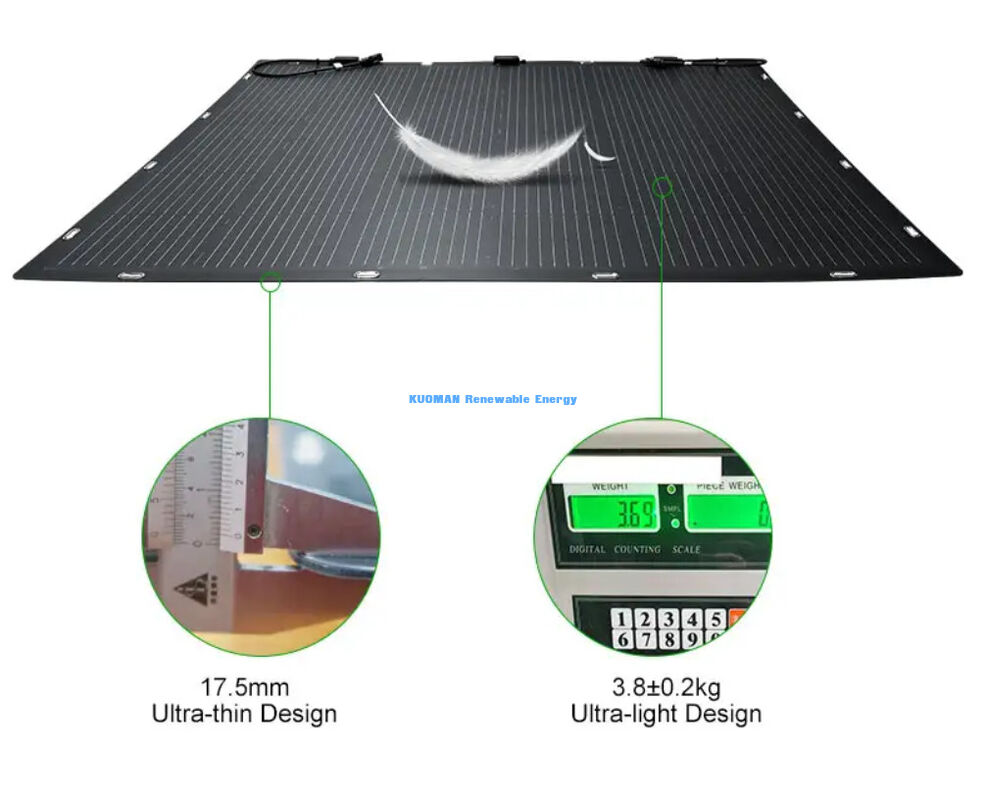 :40V के मानक वोल्टेज के साथ कुशलतापूर्वक संचालित होता है, जो अधिकांश सौर प्रणालियों के लिए उपयुक्त है।200W फ्लेक्सिबल सोलर पैनल का विवरण दिखाया गया है: